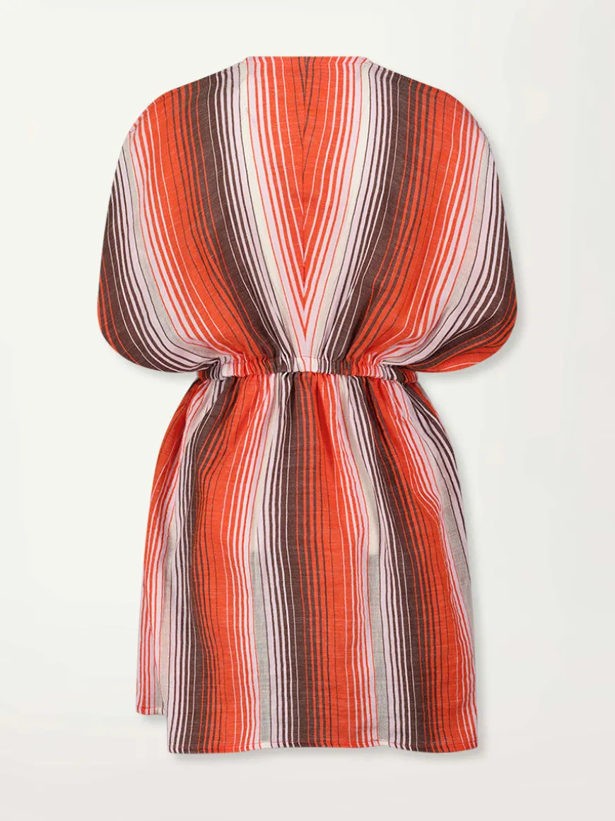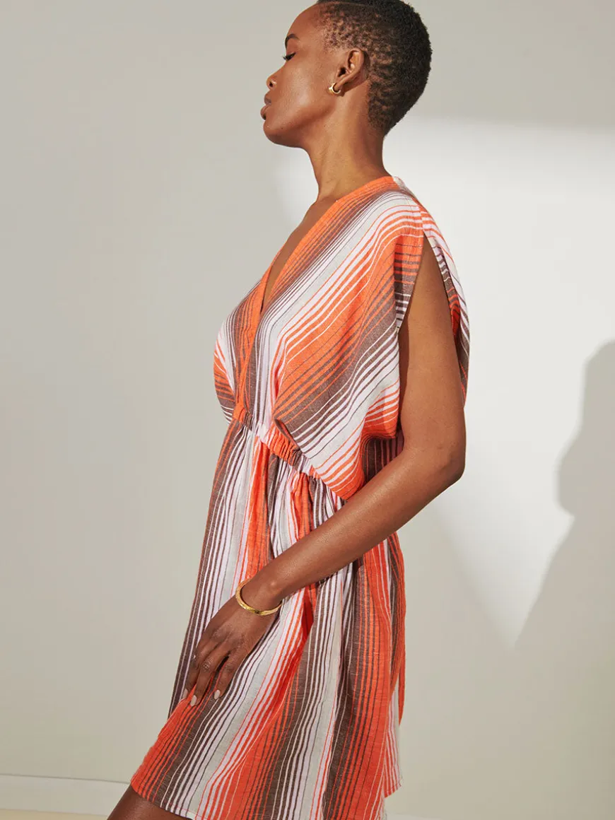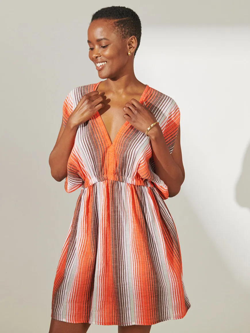This versatile short dress features dolman sleeves, a deep plunge neckline and comfortable elastic waist to create an hourglass silhouette. The ruffled hem makes this style a resort wear staple.