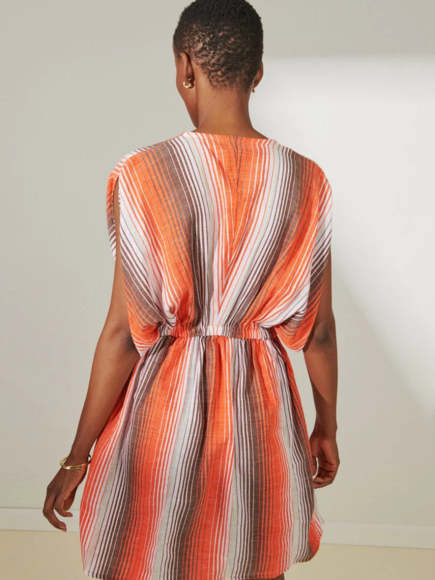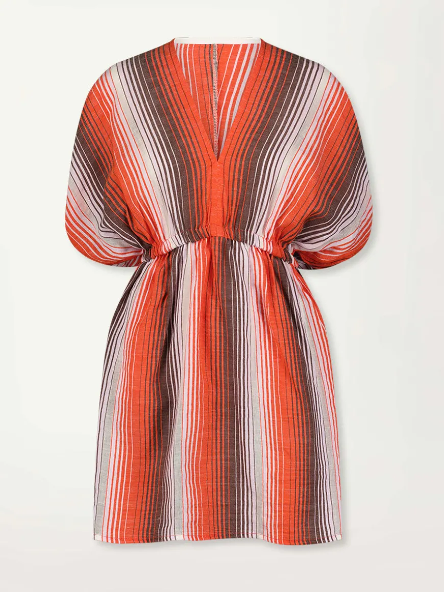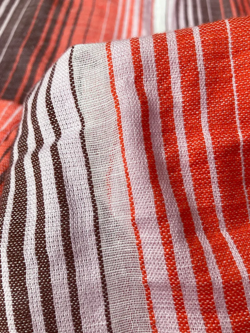 The Feven Cayenne Collection features graded continuous stripe pattern creating an ombre effect featuring earth, orchid & burnt orange.