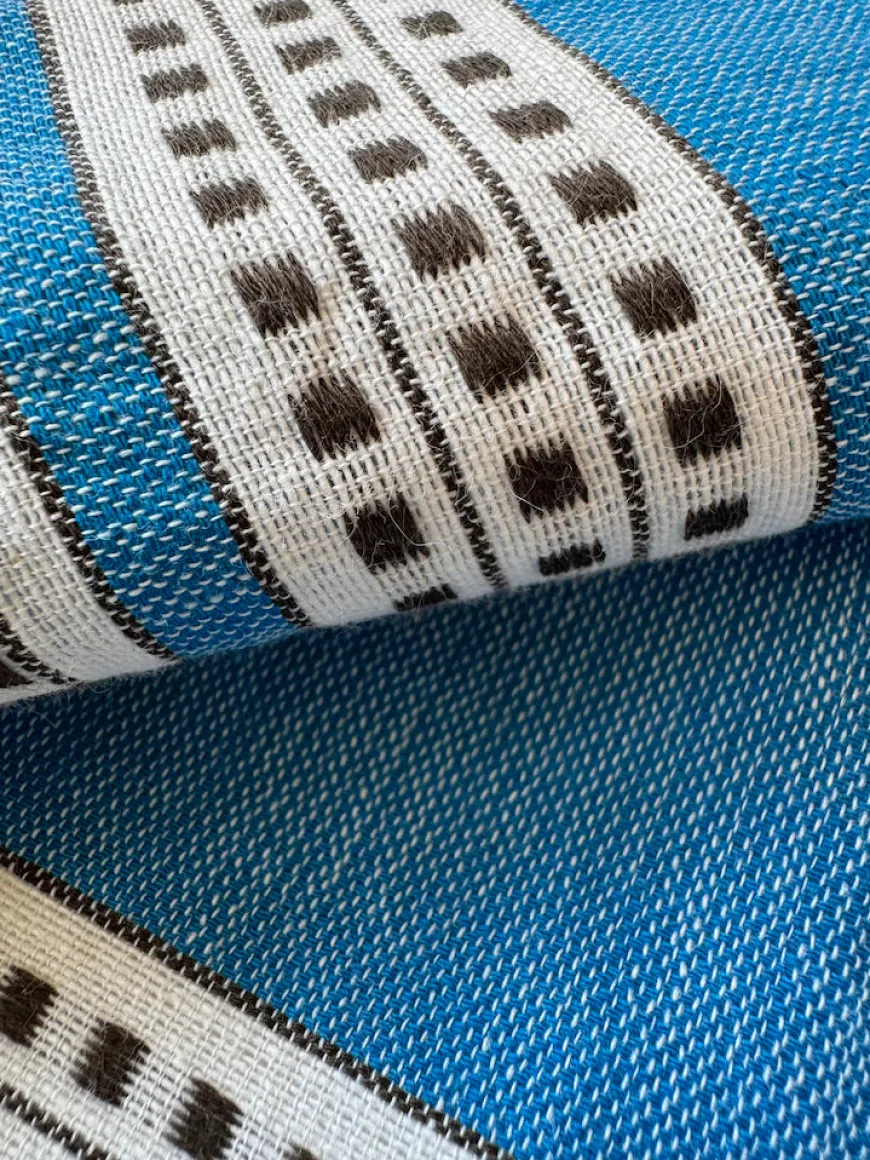 The Amira Baltic Collection revisits our classic Amira pattern, featuring small geometric bands that float on a rich teal blue ground. White and dark earth geometric Tibeb accents add depth and contrast to this timeless design.