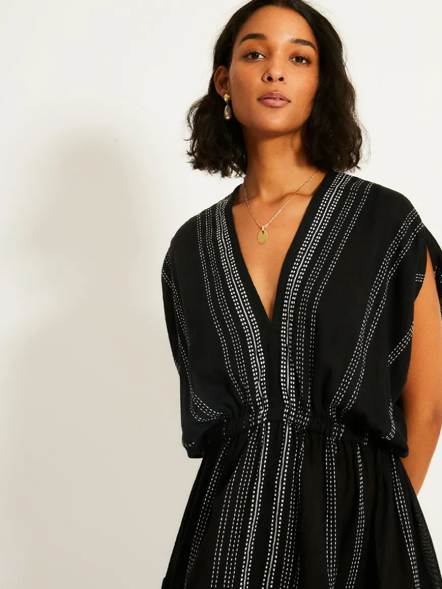 In classic back with white dotted lines, the Leliti collection is a timeless wardrobe staple.
