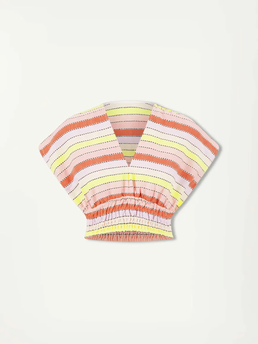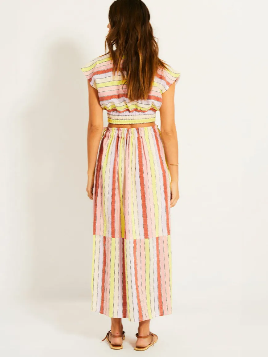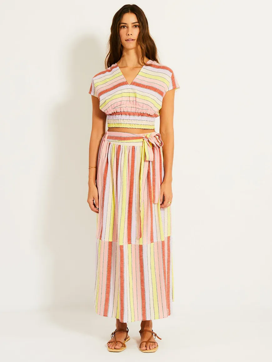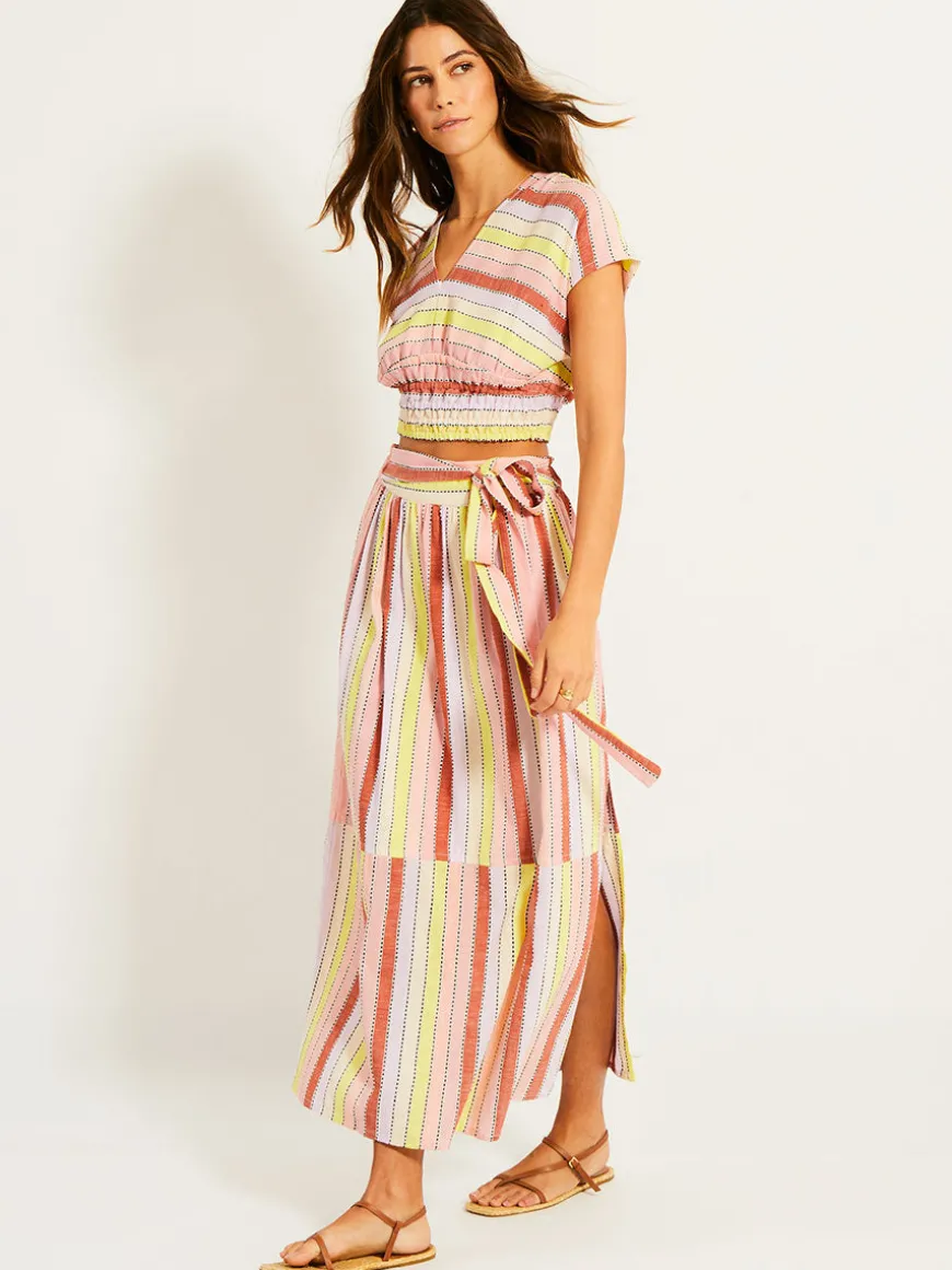 The Meskel Citron Collection features soft sorbet-colored stripes in shades of peach, rust, and orchid, accented with a citrus yellow pop.