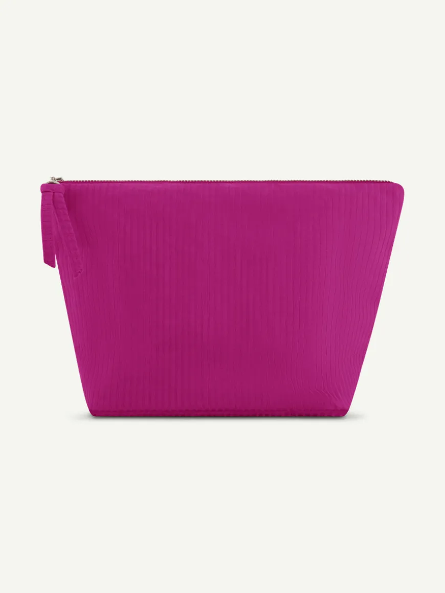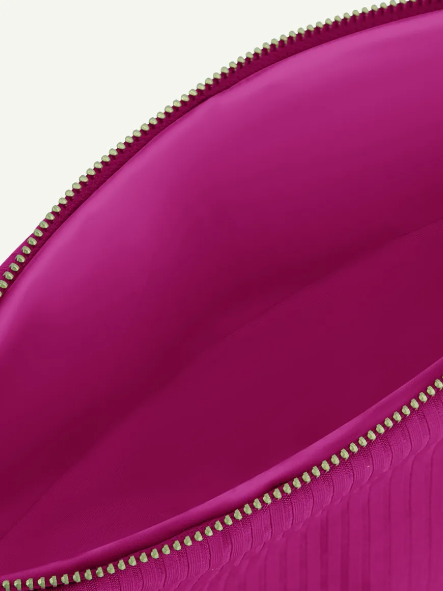 Practical and colorful, this versatile beach pouch is made of unused swimsuit leftover fabric from the Beri Magenta collection, making it water resistant and an ideal travel essential. Secured by a zip closure, it is perfectly sized to carry personal items, such as a cell phone, keys, and make up or even a wet swimsuit.