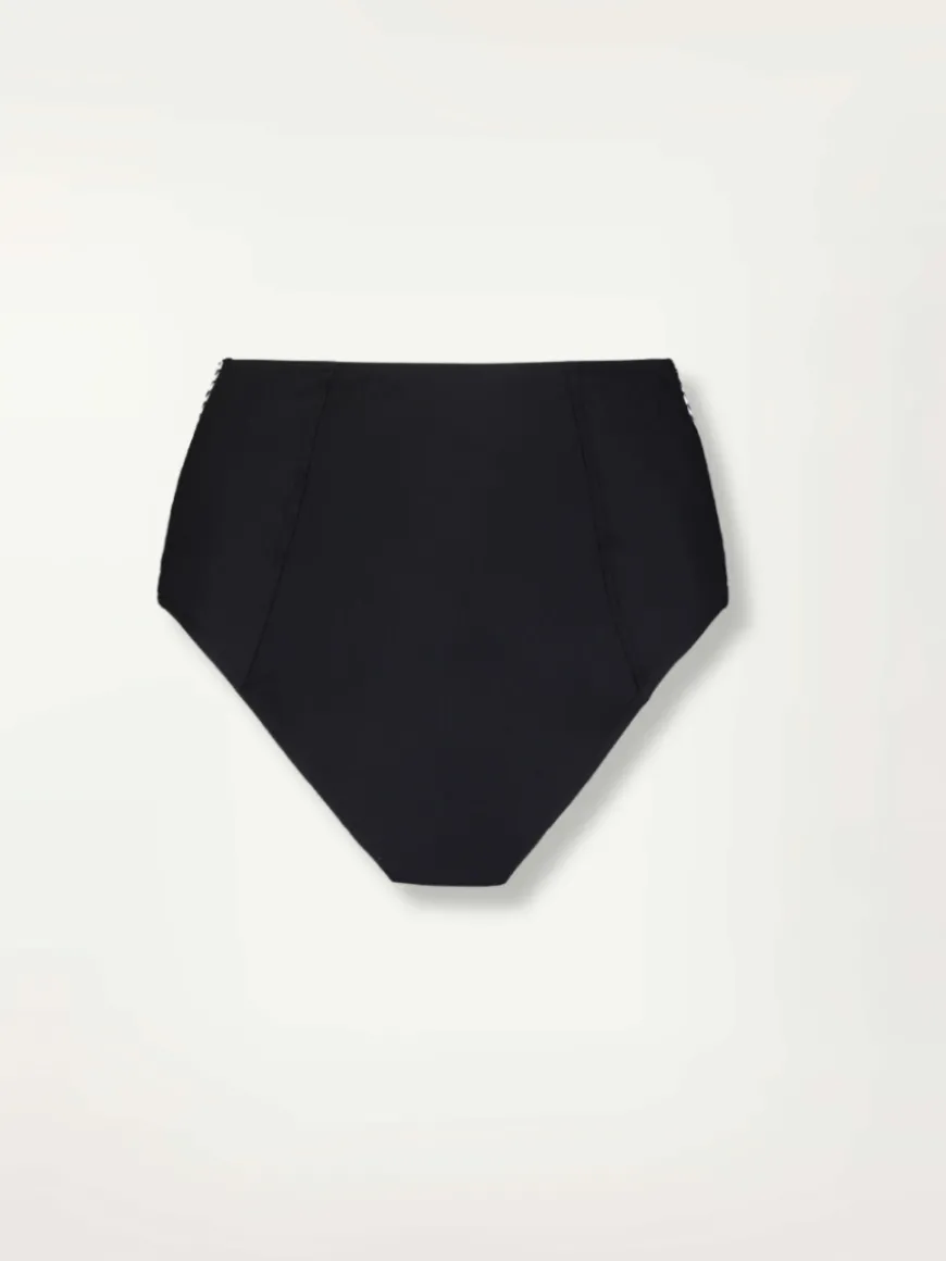 The fully lined high waist bikini bottom offers a flattering and moderate coverage with its low-cut leg opening. The bow tie in the back adds a touch a elegance to the silhouette.