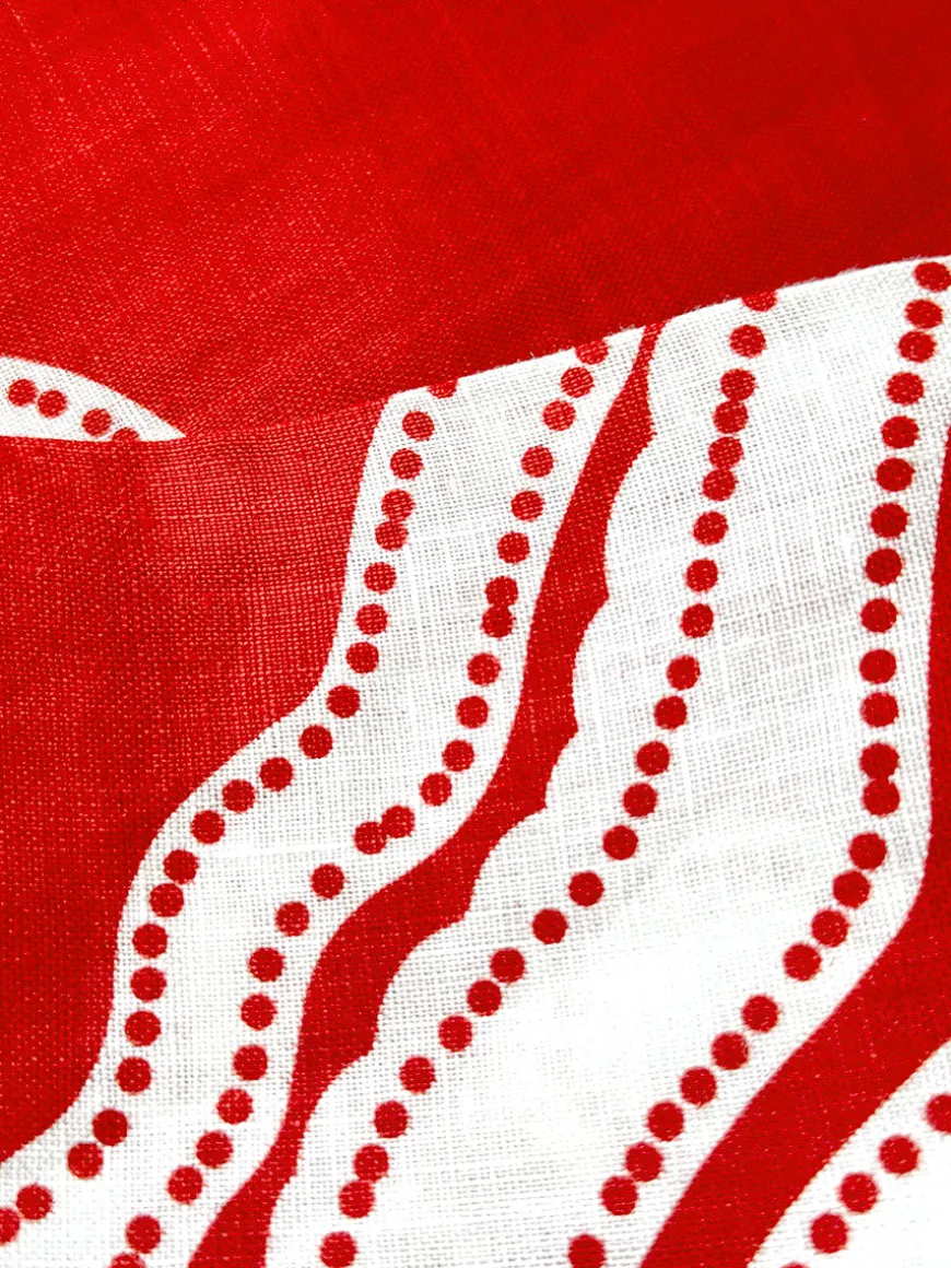 The Niku Red Collection features a custom-designed print inspired by ancient architectural patterns, blending the classic with the contemporary. The design is brought to life with a rich, vibrant red, perfectly grounded by creamy ivory for a striking and timeless look.