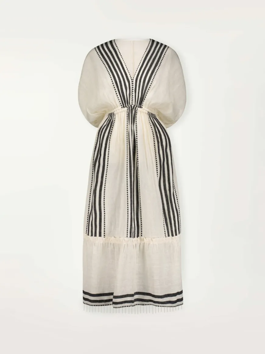 The Eshe collection, a signature lemlem‘s weave, comes in architectural black this season creating bold and textured stripes for a sleek modern look.