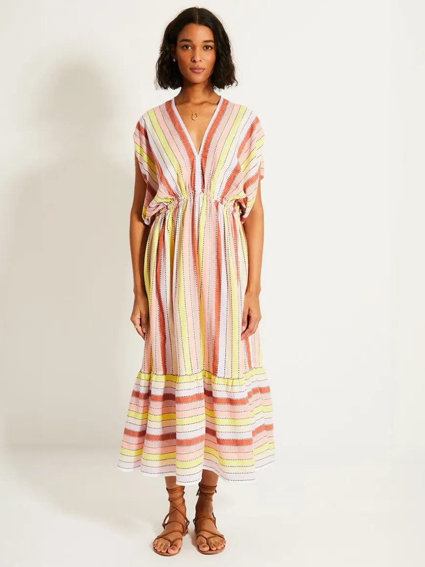 The Meskel Citron Collection features soft sorbet-colored stripes in shades of peach, rust, and orchid, accented with a citrus yellow pop.