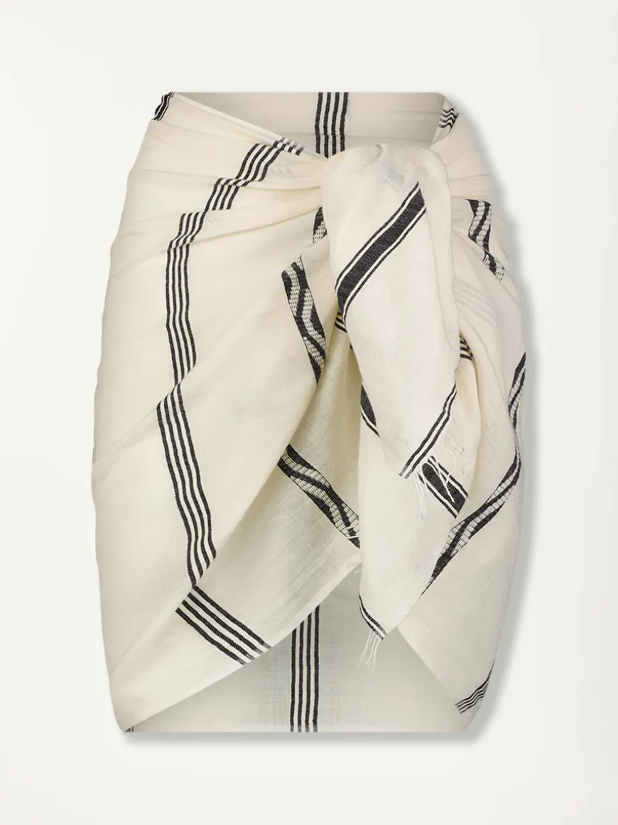 This sarong is designed to be worn a number of ways: as a scarf around the neck; a cover-up around tie around the chest; a pareo tied around the waist or laid flat as a beach blanket, this versatile style is a beach wear essential.