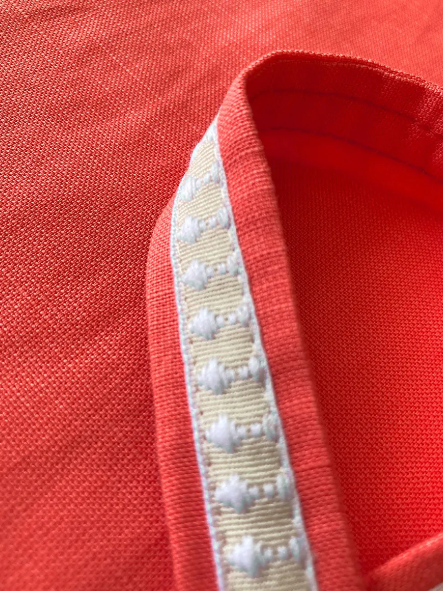 The Kelemi Coral Collection features linen tencel silhouettes in a bright, happy, and sophisticated coral color that flatters all skin tones, accented with the lemlem signature tibeb pattern on belts and ties.