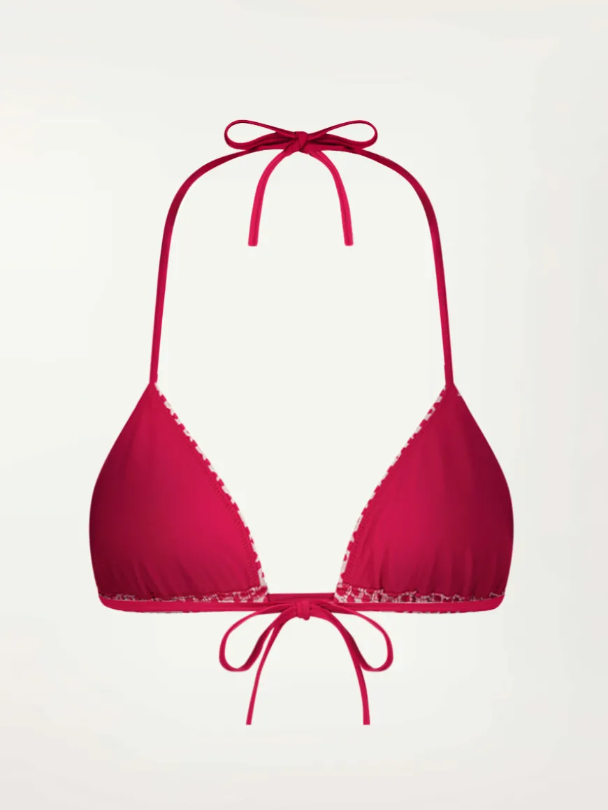 The fully lined triangle bikini top with no padding is a swimwear staple. Featuring adjustable string ties around the neck and back, this top works for a variety of body types and is the perfect pair for a string bikini bottom.