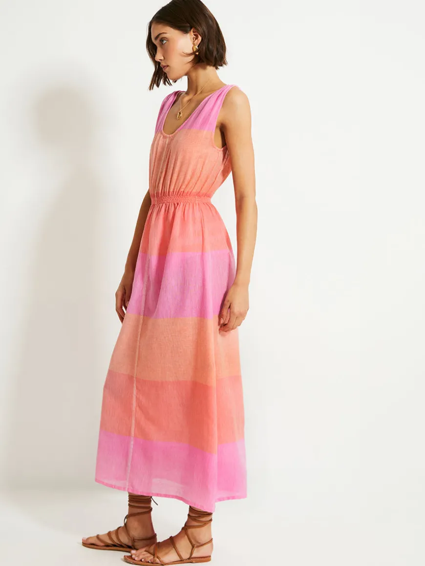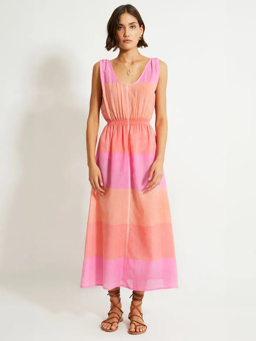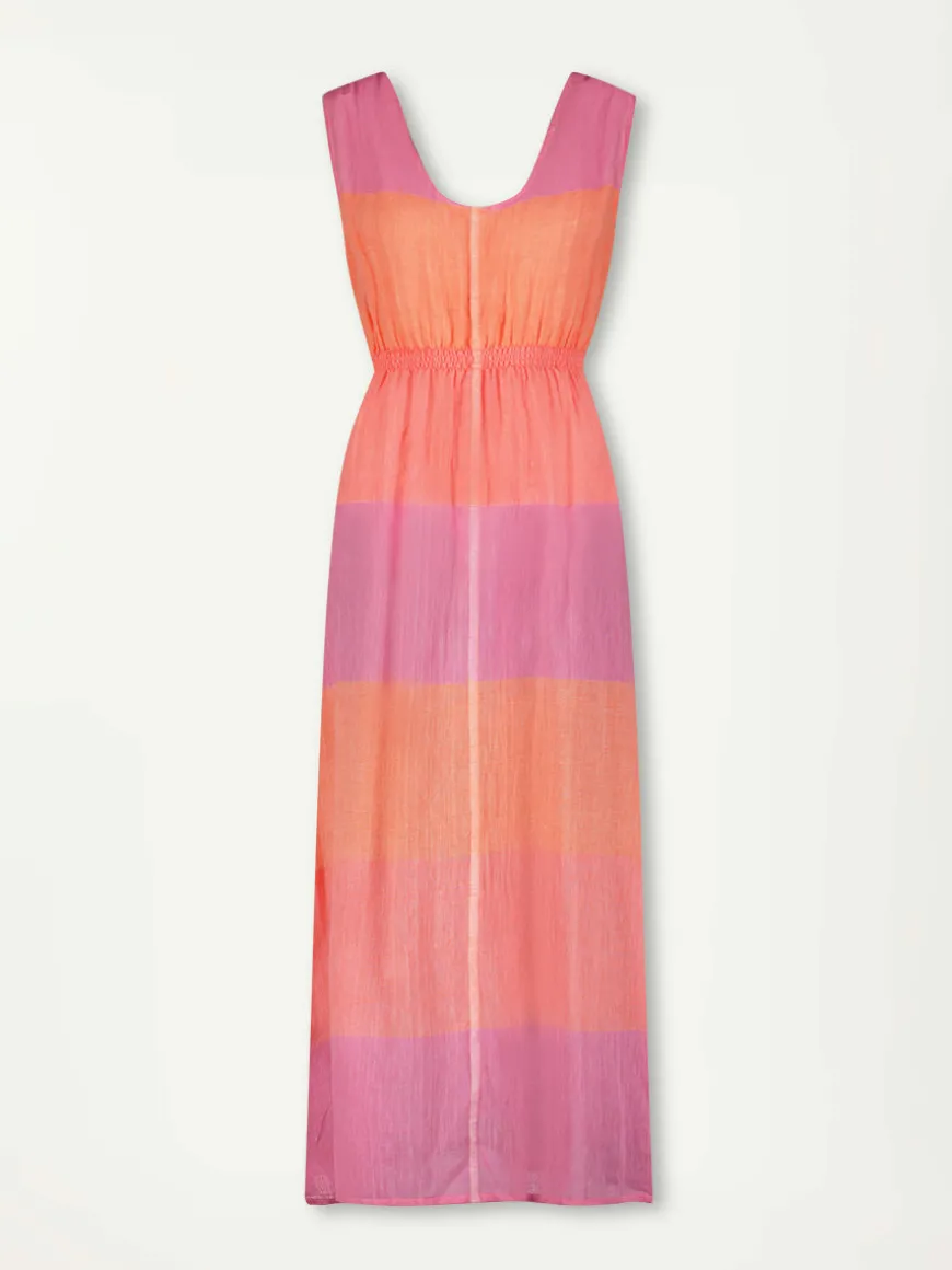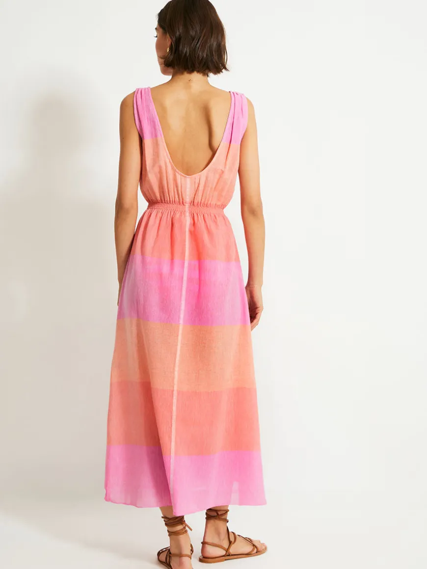 The Nefas Peach Collection showcases a light, gauzy fabric with a beautiful ombre color block of pink, blush, and peach, creating a soft and airy look.