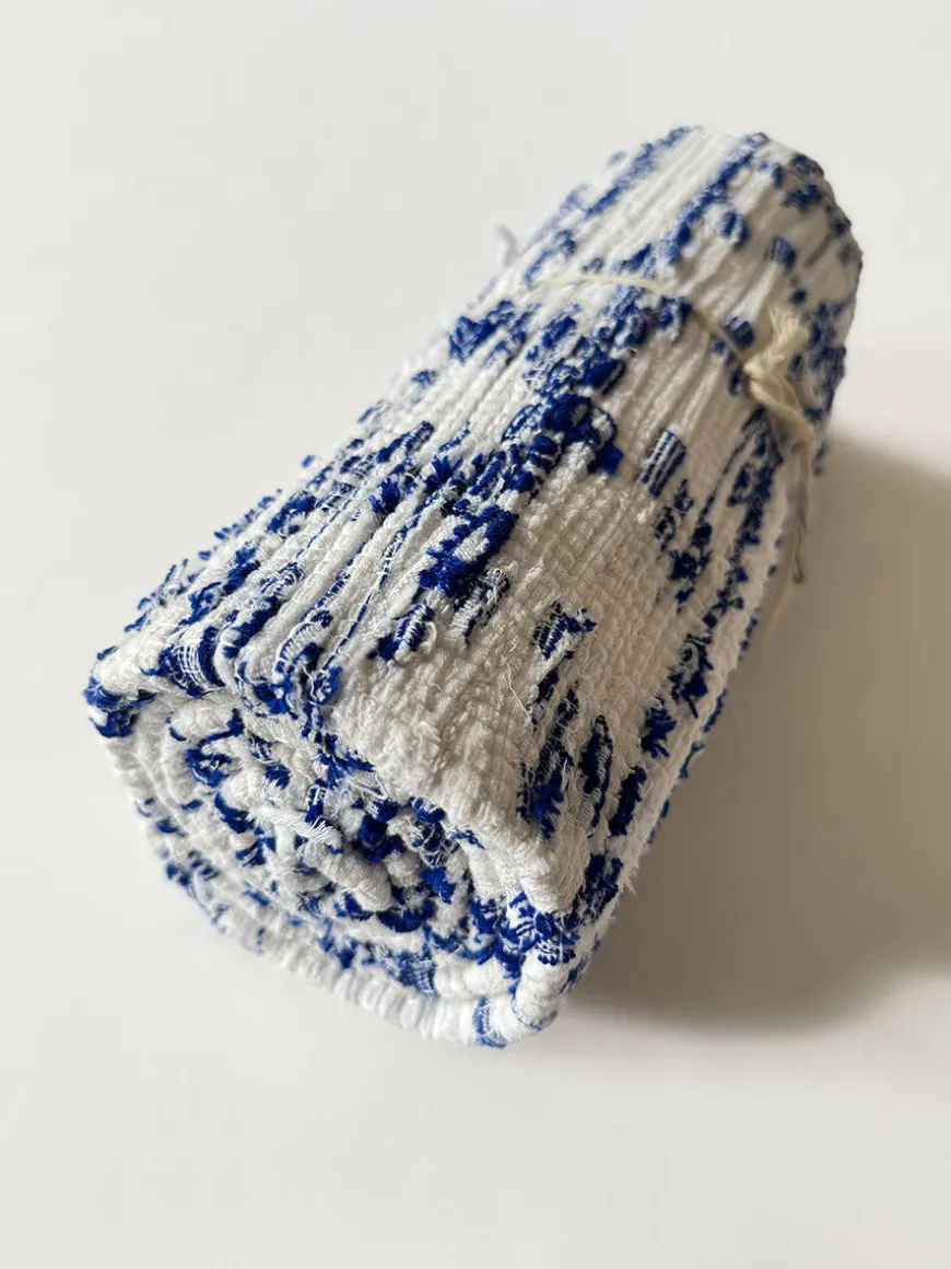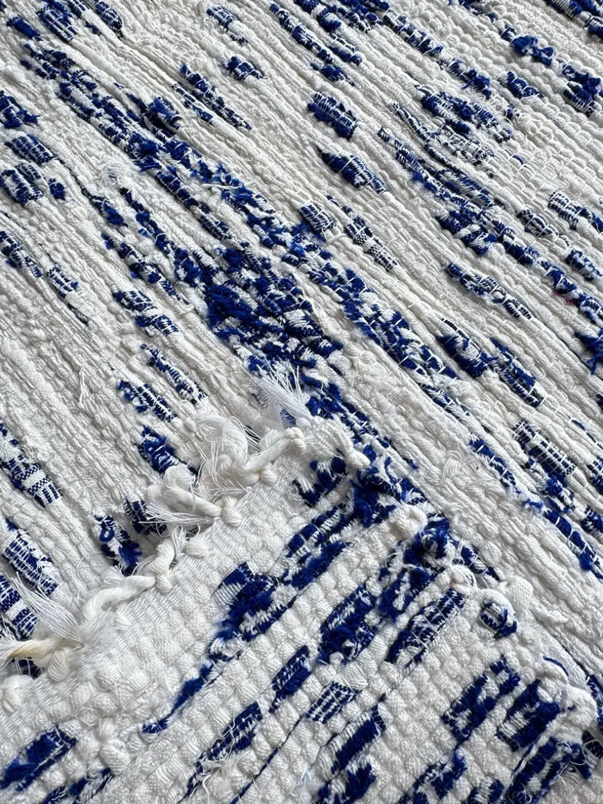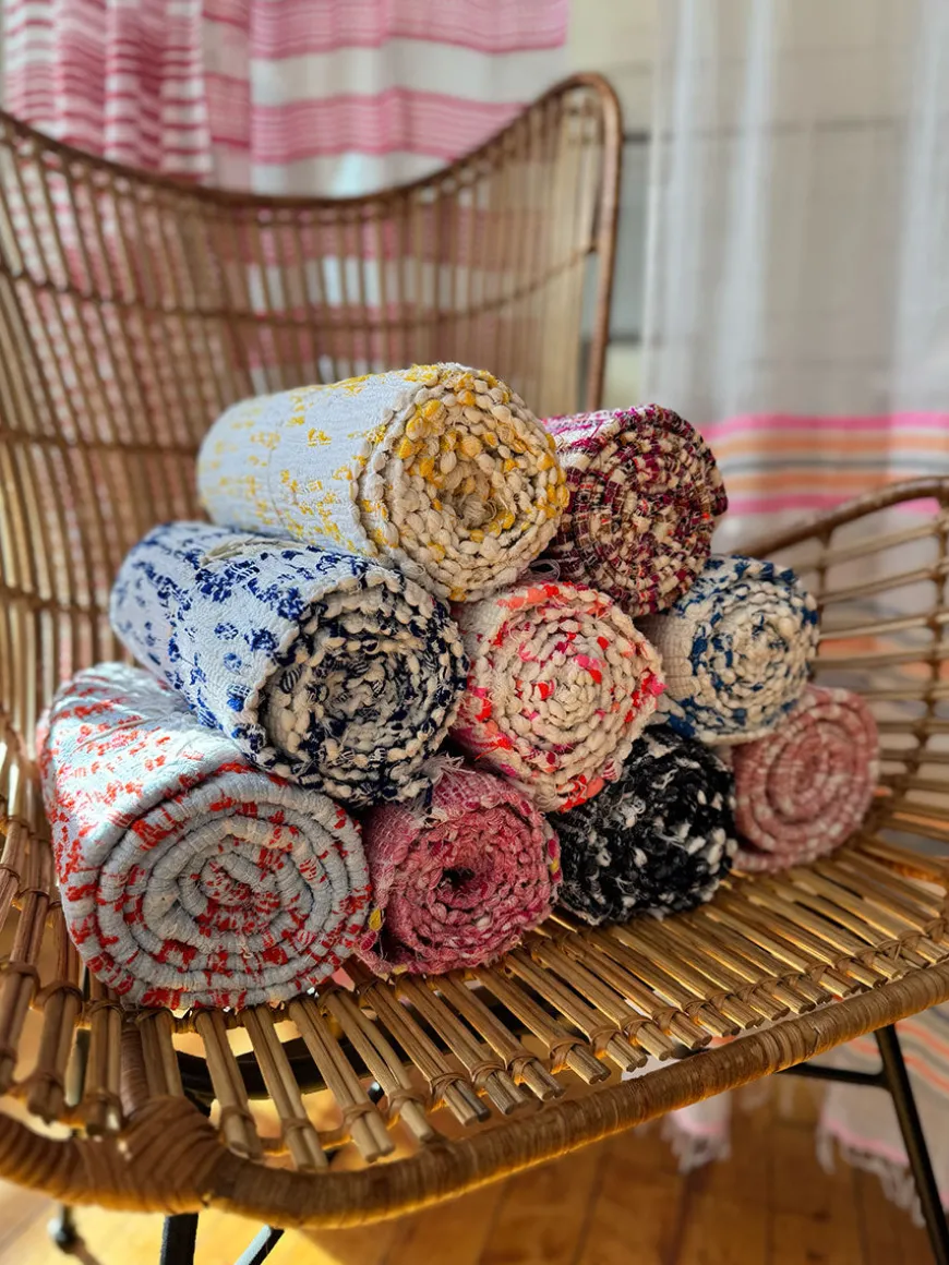 Upcycled from scrap lemlem fabrics and handwoven by our artisans, each rug varies slightly in color and pattern.