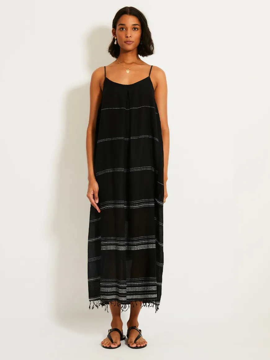In classic back with white dotted lines, the Leliti collection is a timeless wardrobe staple.