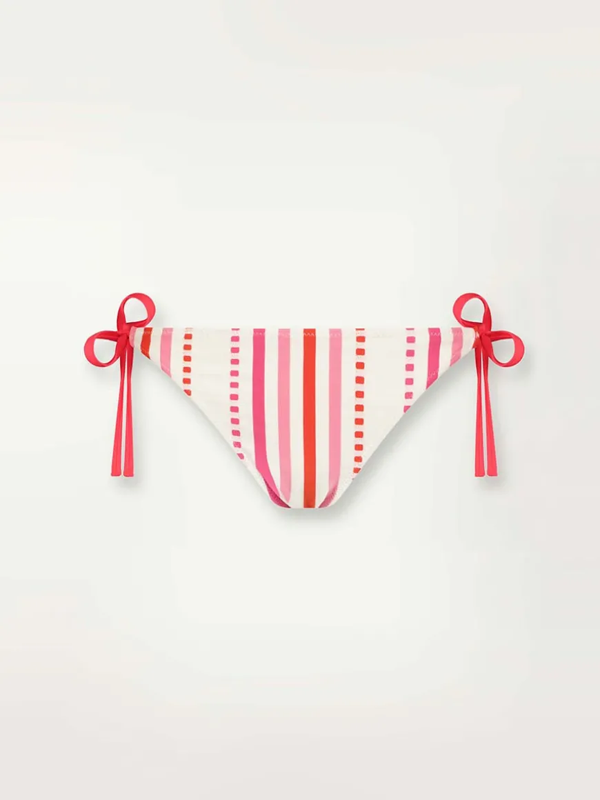 The fully lined string bikini bottom is a swimwear staple. Featuring adjustable string ties at the hip and moderate coverage. Perfect pair for a triangle string top.