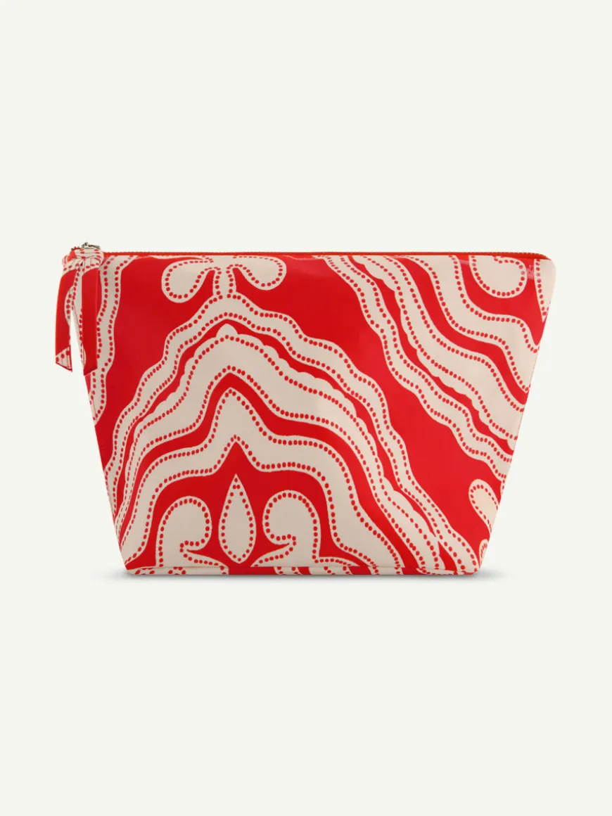 Practical and colorful, this versatile beach pouch is made of unused swimsuit leftover fabric from the Niku Red Collection, making it water resistant and an ideal travel essential. Secured by a zip closure, it is perfectly sized to carry personal items, such as a cell phone, keys, and make up or even a wet swimsuit.