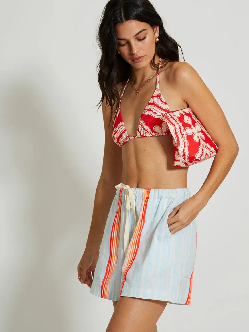 Made from upcycled lemlem swimsuit scraps, each pouch may slightly vary in color and pattern.