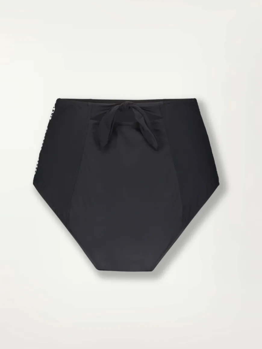 The fully lined high waist bikini bottom offers a flattering and moderate coverage with its low-cut leg opening. The bow tie in the back adds a touch a elegance to the silhouette.