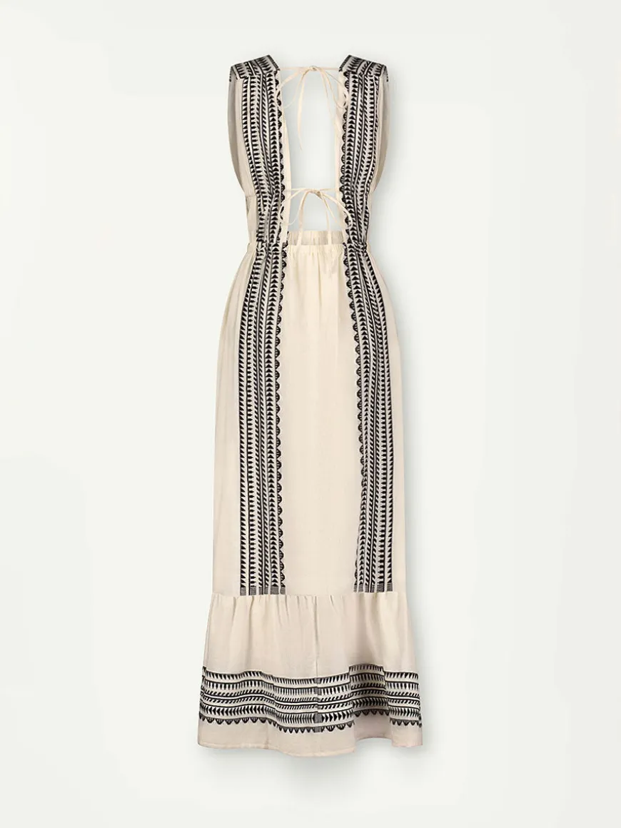 This maxi V-neck dress features a deep plunge neckline, bare sides, and maxi length for a showstopping silhouette. This dress comes with straps that can be adjusted for a perfectly customized fit.