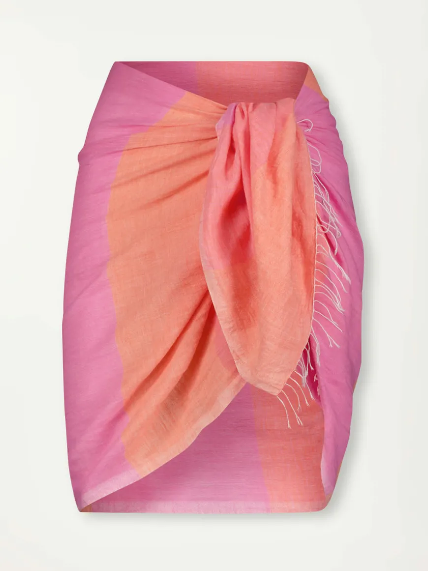 This sarong is designed to be worn a number of ways: as a scarf around the neck; a cover-up around tie around the chest; a pareo tied around the waist or laid flat as a beach blanket, this versatile style is a beach wear essential.