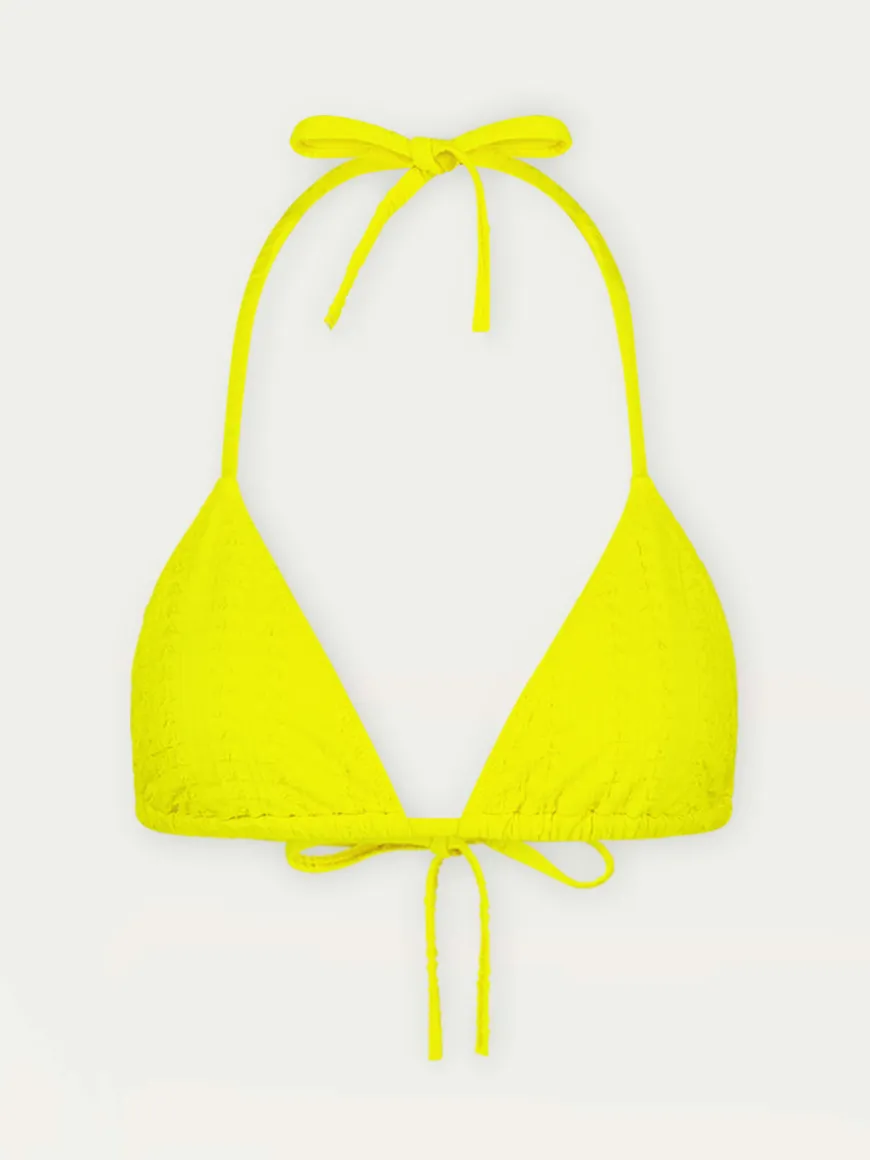 The fully lined triangle bikini top with no padding is a swimwear staple. Featuring adjustable string ties around the neck and back, this top works for a variety of body types and is the perfect pair for a string bikini bottom.