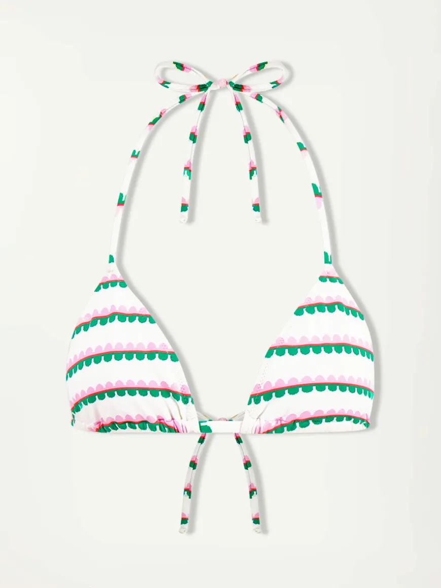 The fully lined triangle bikini top with no padding is a swimwear staple. Featuring adjustable string ties around the neck and back, this top works for a variety of body types and is the perfect pair for a string bikini bottom.