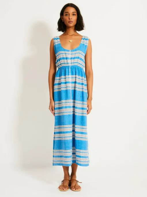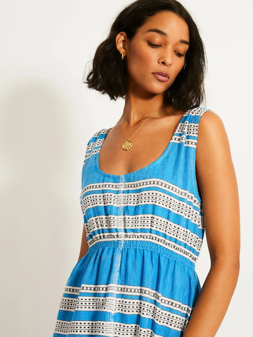This long dress features a flattering scoop neckline, elastic waist, and low back design. Pair it over your swimwear for an effortlessly elegant beach look.