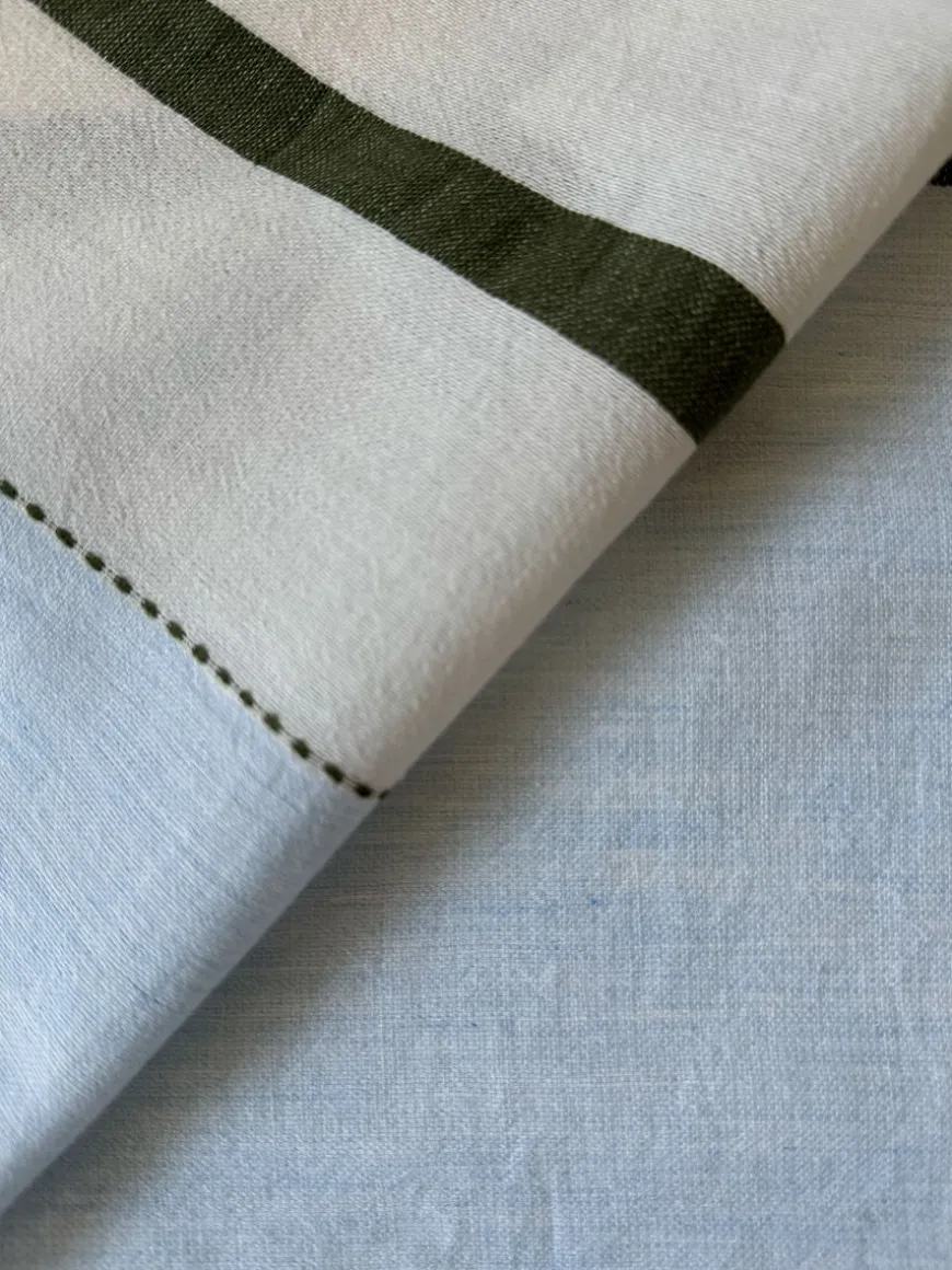 The Entoto Sage Collection features a bold asymmetrical color-block pattern, where airy light blue effortlessly blends with soft sage and cream, creating a fresh, clean, and feminine look.