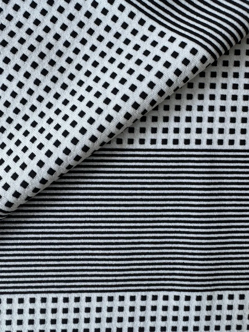 The Semira Swim Collection draws inspiration from our archive signature handwoven Semira pattern, beautifully reimagined in soft jacquard swim fabric. Classic black and ivory hues create a striking contrast on matte jersey knitted jacquard.