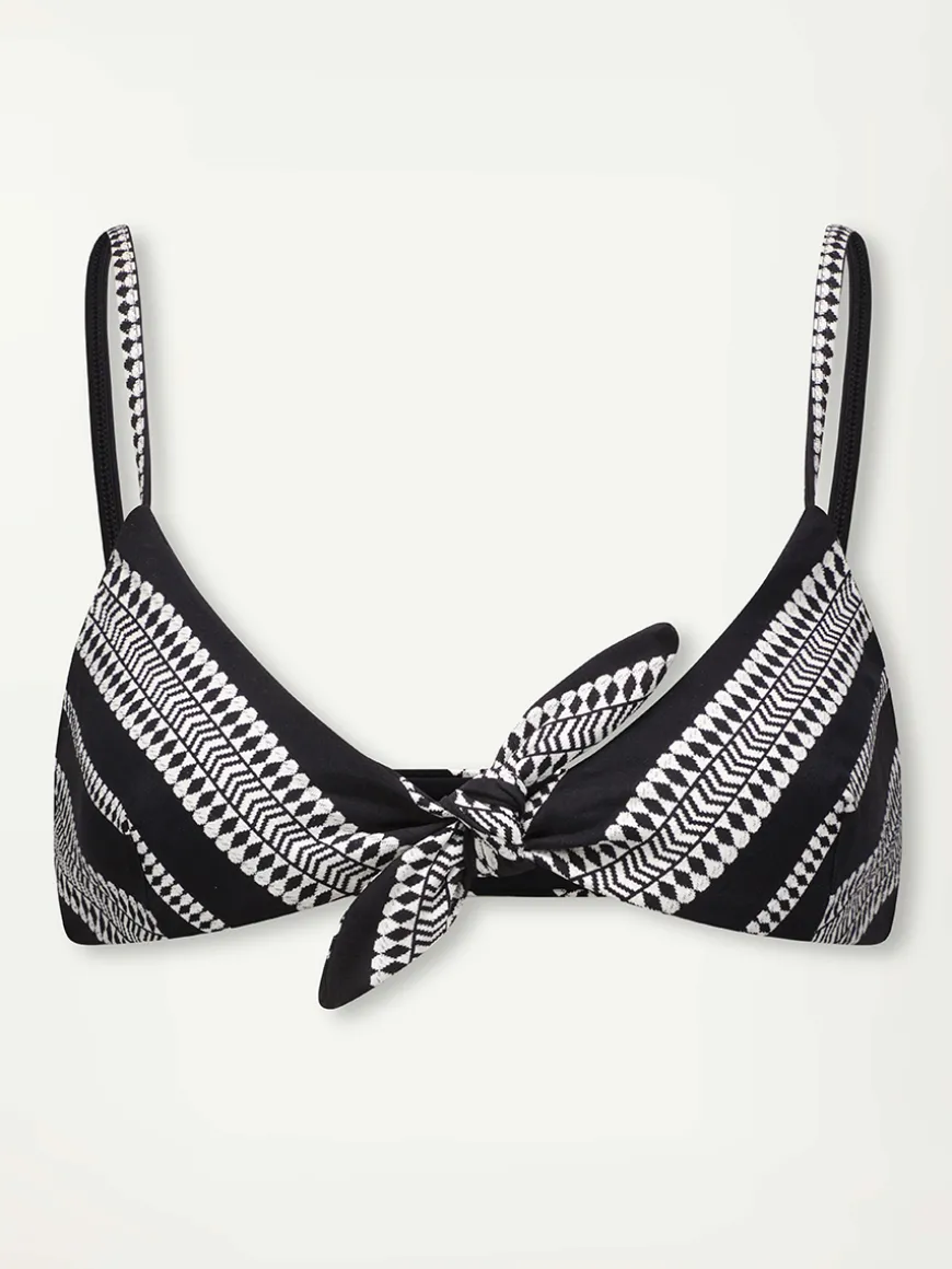 A timeless rendition of the iconic Luchia collection in black features the signature Tibeb pattern in white creating a classic swimwear line.